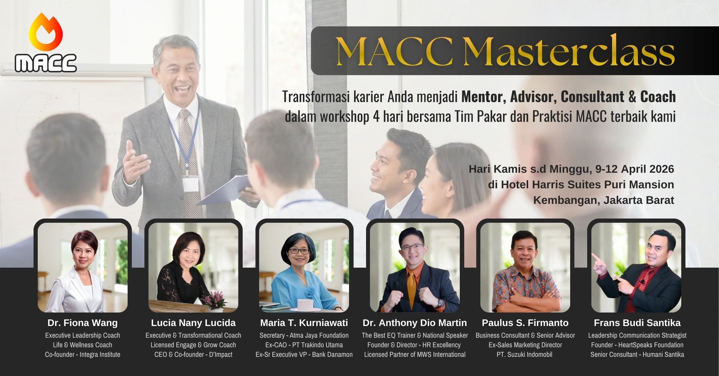 MACC adalah program yang dirancang khusus bagi para Karyawan Spesialis ataupun Leader di level menengah hingga puncak (eksekutif), yang ingin memiliki kompetensi dalam mentransfer pengalaman, pengetahuan dan kemahiran, entah sebagai Pembicara (Motivator), Advisor, Mentor, Coach ataupun Consultant. Dengan demikian, program MACC ini sejatinya tidak hanya dirancang bagi para calon Purna Bakti, melainkan juga bagi para Karyawan Spesialis Senior yang kompetensinya sangat dibutuhkan oleh para suksesor atau karyawan junior.